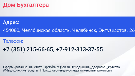 Дом Бухгалтера по адресу 454080, Челябинская область, Челябинск, Энтузиастов, 26 в дальнейшем Организация, размещена в следующих категориях: