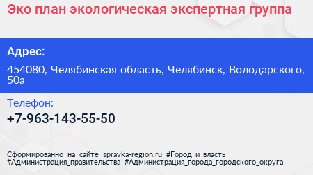 Эко план, экологическая экспертная группа по адресу 454080, Челябинская область, Челябинск, Володарского, 50а в дальнейшем Организация, размещена в следующих категориях: