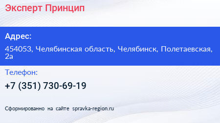 Эксперт Принцип по адресу 454053, Челябинская область, Челябинск, Полетаевская, 2а в дальнейшем Организация, размещена в следующих категориях: