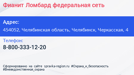 Фианит-Ломбард, федеральная сеть по адресу 454052, Челябинская область, Челябинск, Черкасская, 4 в дальнейшем Организация, размещена в следующих категориях: