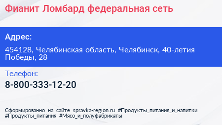 Фианит-Ломбард, федеральная сеть по адресу 454128, Челябинская область, Челябинск, 40-летия Победы, 28 в дальнейшем Организация, размещена в следующих категориях: