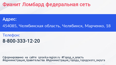 Фианит-Ломбард, федеральная сеть по адресу 454085, Челябинская область, Челябинск, Марченко, 18 в дальнейшем Организация, размещена в следующих категориях: