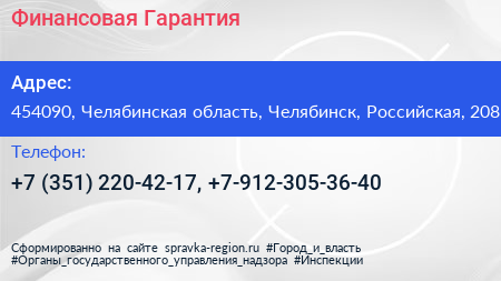 Финансовая Гарантия по адресу 454090, Челябинская область, Челябинск, Российская, 208 в дальнейшем Организация, размещена в следующих категориях: