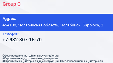 Group-C по адресу 454108, Челябинская область, Челябинск, Барбюса, 2 в дальнейшем Организация, размещена в следующих категориях: