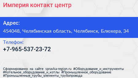 Империя, контакт-центр по адресу 454048, Челябинская область, Челябинск, Блюхера, 34 в дальнейшем Организация, размещена в следующих категориях: