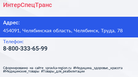 ИнтерСпецТранс по адресу 454091, Челябинская область, Челябинск, Труда, 78 в дальнейшем Организация, размещена в следующих категориях:
