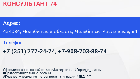 КОНСУЛЬТАНТ 74 по адресу 454084, Челябинская область, Челябинск, Каслинская, 64 в дальнейшем Организация, размещена в следующих категориях:
