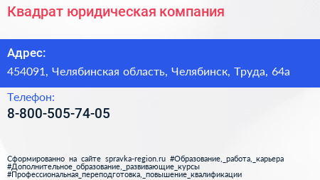 Квадрат, юридическая компания по адресу 454091, Челябинская область, Челябинск, Труда, 64а в дальнейшем Организация, размещена в следующих категориях:
