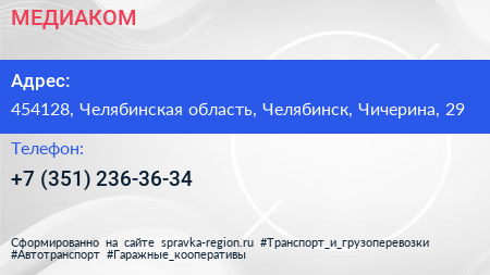 МЕДИАКОМ по адресу 454128, Челябинская область, Челябинск, Чичерина, 29 в дальнейшем Организация, размещена в следующих категориях: