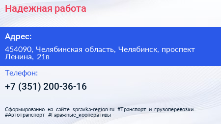 Надежная работа по адресу 454090, Челябинская область, Челябинск, проспект Ленина, 21в в дальнейшем Организация, размещена в следующих категориях: