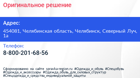 Оригинальное-решение по адресу 454081, Челябинская область, Челябинск, Северный Луч, 1а в дальнейшем Организация, размещена в следующих категориях: