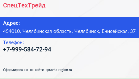 СпецТехТрейд по адресу 454010, Челябинская область, Челябинск, Енисейская, 37 в дальнейшем Организация, размещена в следующих категориях: