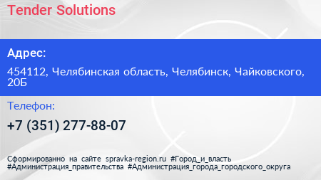Tender-Solutions по адресу 454112, Челябинская область, Челябинск, Чайковского, 20Б в дальнейшем Организация, размещена в следующих категориях: