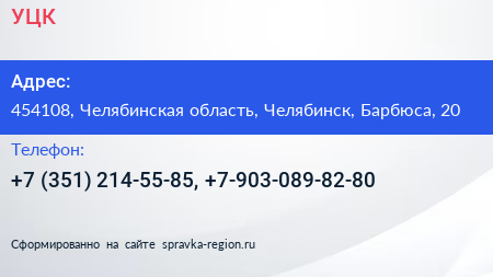 УЦК по адресу 454108, Челябинская область, Челябинск, Барбюса, 20 в дальнейшем Организация, размещена в следующих категориях: