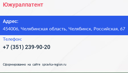 Южуралпатент по адресу 454006, Челябинская область, Челябинск, Российская, 67 в дальнейшем Организация, размещена в следующих категориях: