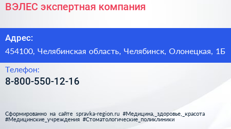 ВЭЛЕС, экспертная компания по адресу 454100, Челябинская область, Челябинск, Олонецкая, 1Б в дальнейшем Организация, размещена в следующих категориях: