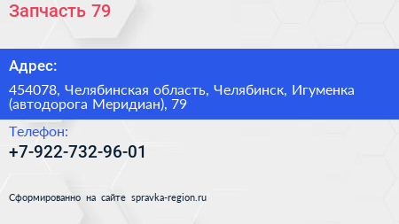 Запчасть 79 по адресу 454078, Челябинская область, Челябинск, Игуменка (автодорога Меридиан), 79 в дальнейшем Организация, размещена в следующих категориях: