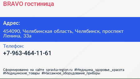 BRAVO, гостиница по адресу 454090, Челябинская область, Челябинск, проспект Ленина, 33а в дальнейшем Организация, размещена в следующих категориях: