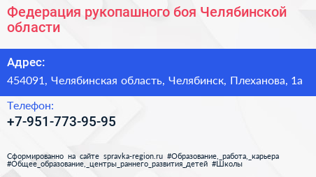 Федерация рукопашного боя Челябинской области по адресу 454091, Челябинская область, Челябинск, Плеханова, 1а в дальнейшем Организация, размещена в следующих категориях: