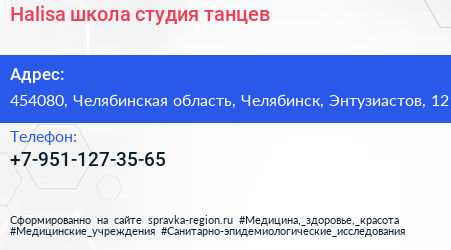 Halisa, школа-студия танцев по адресу 454080, Челябинская область, Челябинск, Энтузиастов, 12 в дальнейшем Организация, размещена в следующих категориях: