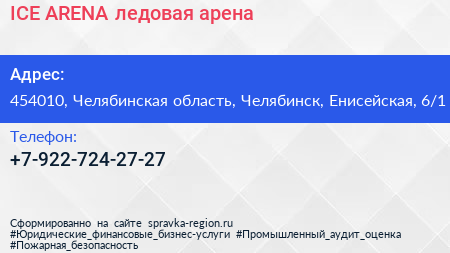 ICE ARENA, ледовая арена по адресу 454010, Челябинская область, Челябинск, Енисейская, 6/1 в дальнейшем Организация, размещена в следующих категориях: