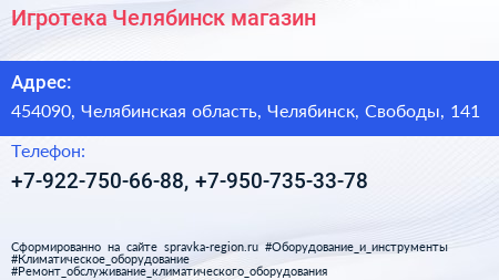 Игротека-Челябинск, магазин по адресу 454090, Челябинская область, Челябинск, Свободы, 141 в дальнейшем Организация, размещена в следующих категориях: