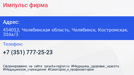 Импульс, фирма по адресу 454012, Челябинская область, Челябинск, Костромская, 316а/3 в дальнейшем Организация, размещена в следующих категориях: