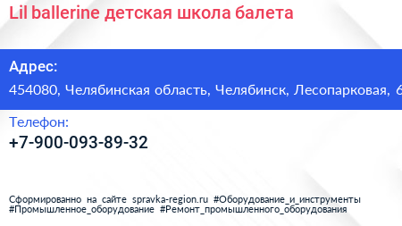 Lil ballerine, детская школа балета по адресу 454080, Челябинская область, Челябинск, Лесопарковая, 6 в дальнейшем Организация, размещена в следующих категориях: