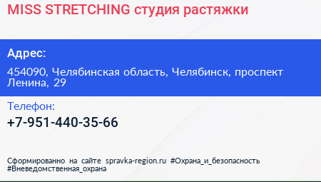 MISS STRETCHING, студия растяжки по адресу 454090, Челябинская область, Челябинск, проспект Ленина, 29 в дальнейшем Организация, размещена в следующих категориях:
