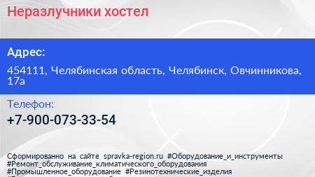 Неразлучники, хостел по адресу 454111, Челябинская область, Челябинск, Овчинникова, 17а в дальнейшем Организация, размещена в следующих категориях: