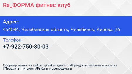 Re_ФОРМА, фитнес-клуб по адресу 454084, Челябинская область, Челябинск, Кирова, 76 в дальнейшем Организация, размещена в следующих категориях: