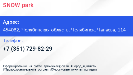 SNOW park по адресу 454082, Челябинская область, Челябинск, Чапаева, 114 в дальнейшем Организация, размещена в следующих категориях: