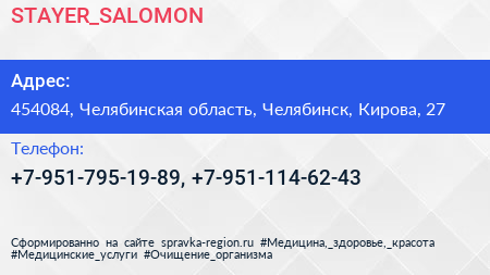 STAYER_SALOMON по адресу 454084, Челябинская область, Челябинск, Кирова, 27 в дальнейшем Организация, размещена в следующих категориях: