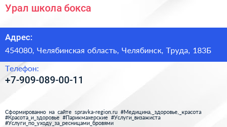 Урал, школа бокса по адресу 454080, Челябинская область, Челябинск, Труда, 183Б в дальнейшем Организация, размещена в следующих категориях:
