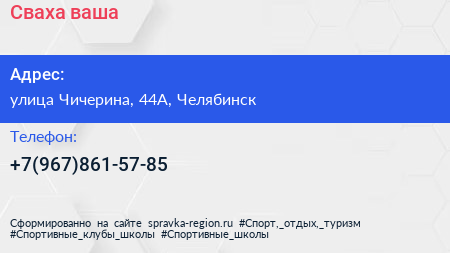 Сваха ваша по адресу улица Чичерина, 44А, Челябинск в дальнейшем Организация, размещена в следующих категориях: