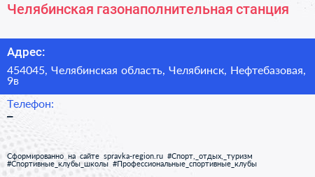 Челябинская газонаполнительная станция по адресу 454045, Челябинская область, Челябинск, Нефтебазовая, 9в в дальнейшем Организация, размещена в следующих категориях: