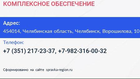 КОМПЛЕКСНОЕ ОБЕСПЕЧЕНИЕ по адресу 454014, Челябинская область, Челябинск, Ворошилова, 10 в дальнейшем Организация, размещена в следующих категориях: