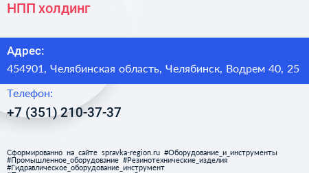 НПП, холдинг по адресу 454901, Челябинская область, Челябинск, Водрем 40, 25 в дальнейшем Организация, размещена в следующих категориях: