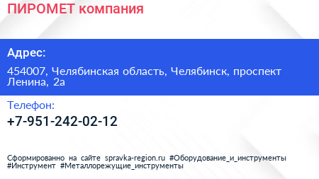 ПИРОМЕТ, компания по адресу 454007, Челябинская область, Челябинск, проспект Ленина, 2а в дальнейшем Организация, размещена в следующих категориях: