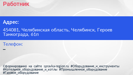 Работник по адресу 454081, Челябинская область, Челябинск, Героев Танкограда, 61п в дальнейшем Организация, размещена в следующих категориях: