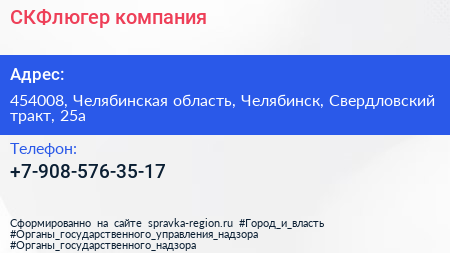 СКФлюгер, компания по адресу 454008, Челябинская область, Челябинск, Свердловский тракт, 25а в дальнейшем Организация, размещена в следующих категориях: