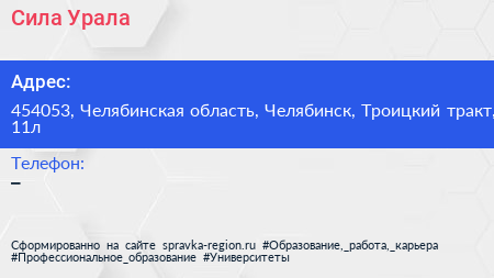 Сила Урала по адресу 454053, Челябинская область, Челябинск, Троицкий тракт, 11л в дальнейшем Организация, размещена в следующих категориях: