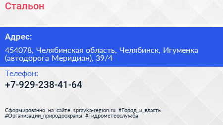 Стальон по адресу 454078, Челябинская область, Челябинск, Игуменка (автодорога Меридиан), 39/4 в дальнейшем Организация, размещена в следующих категориях: