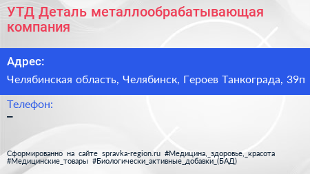 УТД-Деталь, металлообрабатывающая компания по адресу Челябинская область, Челябинск, Героев Танкограда, 39п в дальнейшем Организация, размещена в следующих категориях: