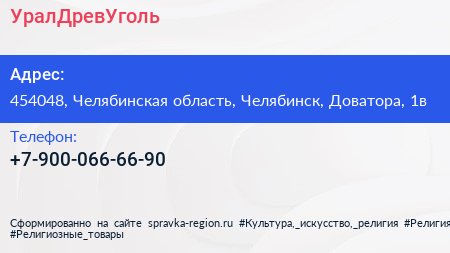УралДревУголь по адресу 454048, Челябинская область, Челябинск, Доватора, 1в в дальнейшем Организация, размещена в следующих категориях: