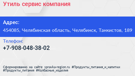 Утиль-сервис, компания по адресу 454085, Челябинская область, Челябинск, Танкистов, 189 в дальнейшем Организация, размещена в следующих категориях: