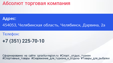 Абсолют, торговая компания по адресу 454053, Челябинская область, Челябинск, Дарвина, 2а в дальнейшем Организация, размещена в следующих категориях: