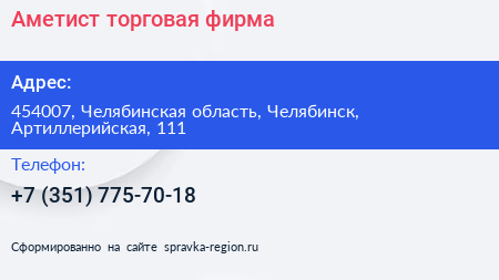 Аметист, торговая фирма по адресу 454007, Челябинская область, Челябинск, Артиллерийская, 111 в дальнейшем Организация, размещена в следующих категориях: