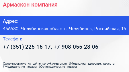 Армаскон, компания по адресу 456530, Челябинская область, Челябинск, Российская, 15 в дальнейшем Организация, размещена в следующих категориях: