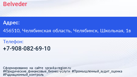 Belveder по адресу 456510, Челябинская область, Челябинск, Школьная, 1в в дальнейшем Организация, размещена в следующих категориях: